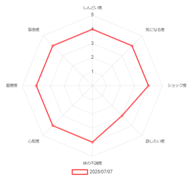 - 日々のメンタル状態を記録し、レーダーチャートで客観的に確認できます。