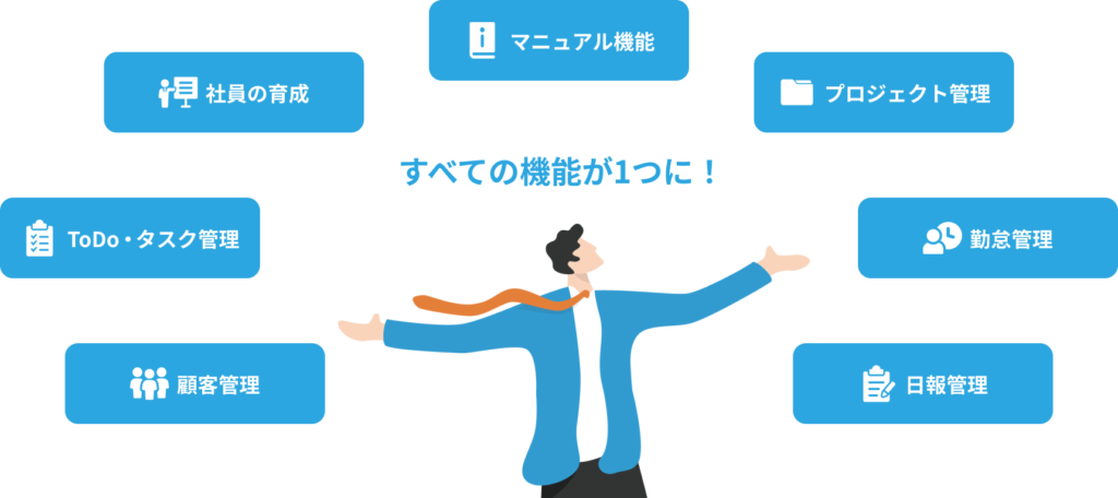 | 勤怠管理 | 長時間労働や残業の見落とし、有休取得の把握不足 | 「勤怠管理」機能で有休取得や残業時間をリアルタイムで可視化し、適正な労働時間管理を実現 |