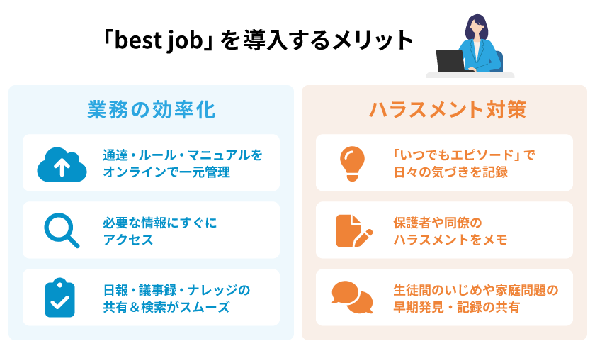 「best job」を導入すれば、学校現場の業務効率化とハラスメント対策が一気に進む