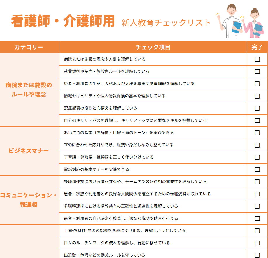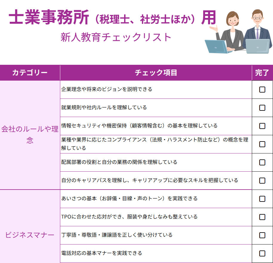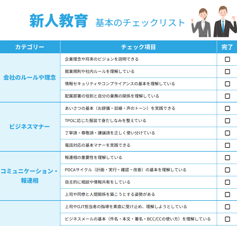 上司は指導の抜け漏れを防ぎ、新人は「次に何を身につけるべきか」が明確になります。